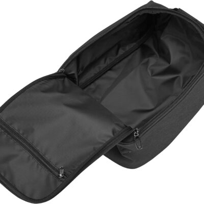 This premium golf shoe bag is perfect for storing your shoes. It has ventilated side ports for increased airflow to prevent the build of moisture or odour. The bag has an ergonomic carry strap and is highlighted with a TaylorMade high-density logo, plus has a custom logo ready front panel for personalisation. The Performance Shoe Bag Features: Roomy space fits most shoe sized Spike and wrench pocket Vent-hole provide moisture ventilation High density printed TaylorMade logo 15 x 11 x 5