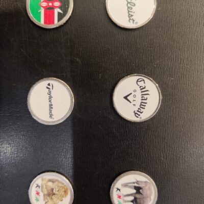 Metallic Golf Ball Markers Please let us know when ordering which design you would like : 1. Kenyan Flag 2. TaylorMade 3. Lion [SOLD OUT] 4. Titleist [SOLD OUT] 5. Callaway [SOLD OUT] 6. Elephant [SOLD OUT]