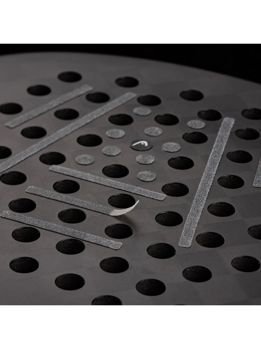 Packaging contains two sets of different types of strips, including long and short sizes, as well as dots. With only 2 gr of weight and a patented-layers technology for extra durability and minimum energy loss, the strips fit all racquets with any drilling pattern and any type of surface.